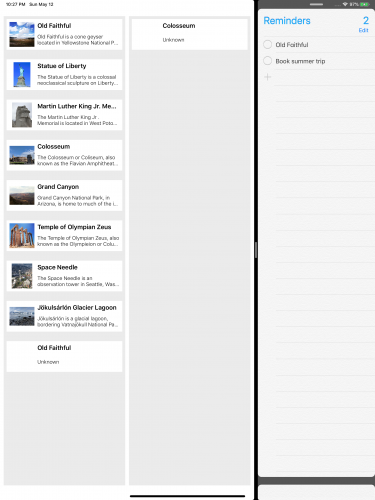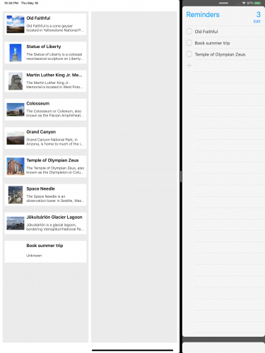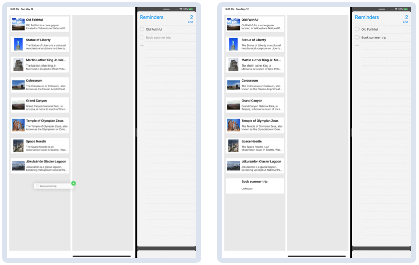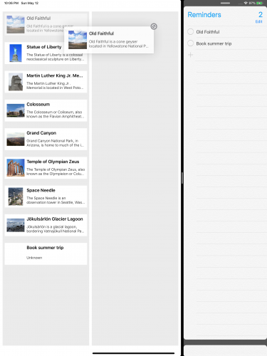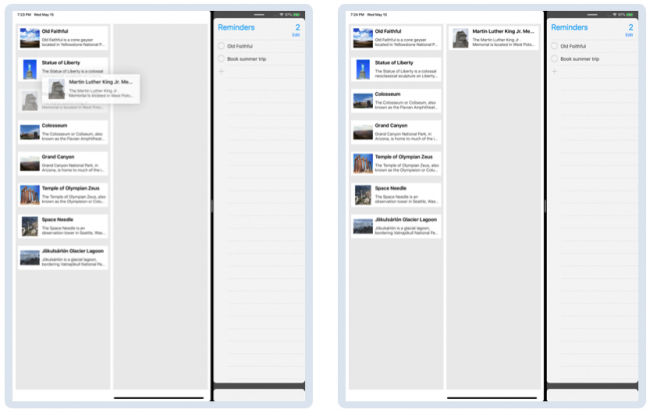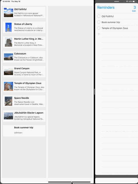 构建并运行应用程序。 如有必要,将Reminders放在Split View中。 检查Reminders和CacheMaker之间的拖放项是否像以前一样工作:
