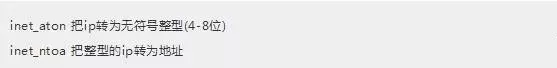 插入数据前,先用inet_aton把ip地址转为整型,可以节省空间。显示数据时,使用inet_ntoa把整型的ip地址转为地址显示即可。