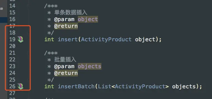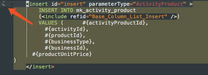 安装之后在Java dao层会生成一个标记,点击标记立即跳转到xml文件指定位置,非常方便: