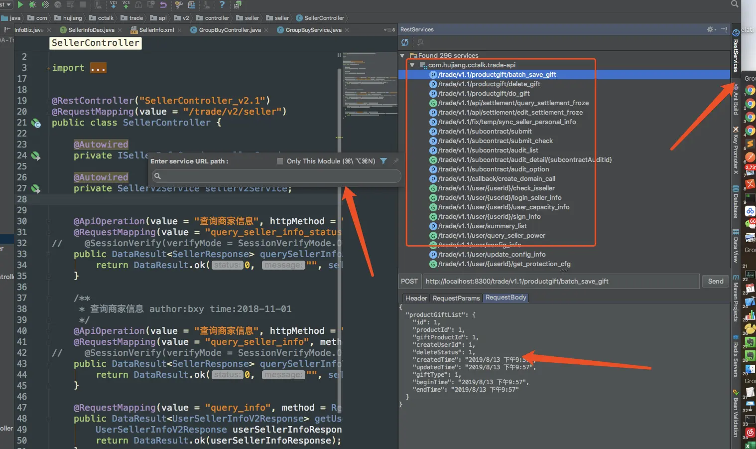 还可以查看Services中所有的接口url list,并且模拟请求,非常方便,简化操作