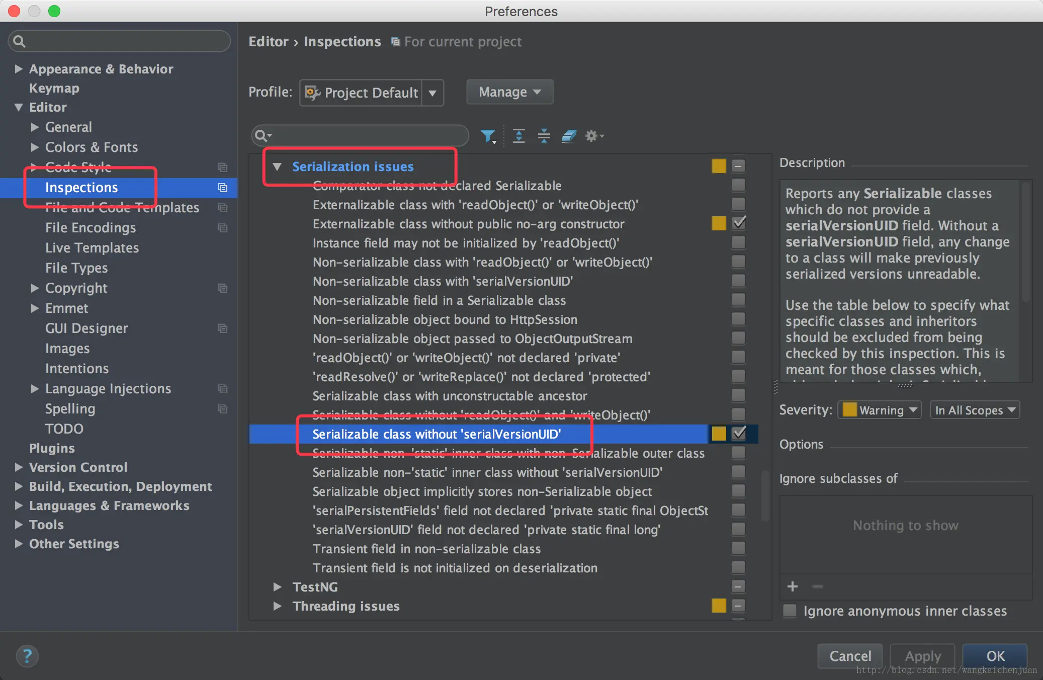 Java 的序列化机制是通过在运行时判断类的serialVersionUID来验证版本一致性的。在反序列化时,JVM会把传来的字节流中的serialVersionUID与本地相应实体(类)的serialVersionUID进行比较,如果相同就认为是一致的,可以进行反序列化,否则就会出现序列化版本不一致的异常。所以生成serialVersionUID 会很频繁,这个插件一个快捷键帮你搞定 Alt + Insert