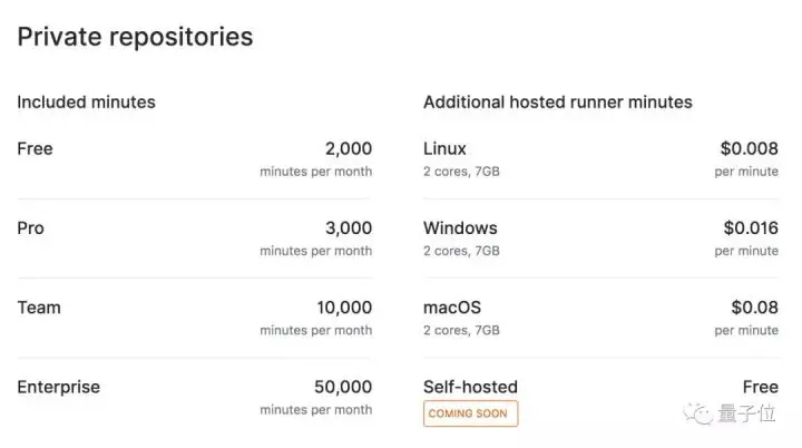 而私有项目要用CI/CD,就有价格表了: