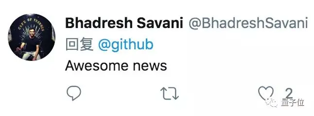 原本要靠第三方才能实现的功能,现在GitHub自己就干了,这当然引来了许多程序员的热烈欢迎,没多久,GitHub推特的评论区里欢呼声此起彼伏:Awesome! Cool! Amazing!