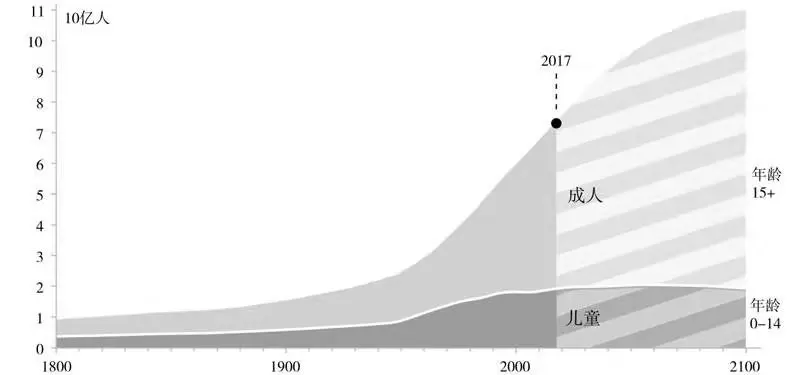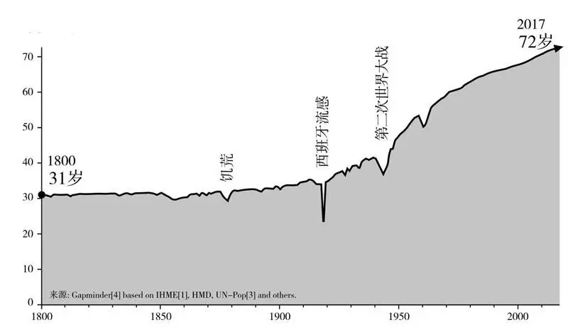 1800年,人类的平均寿命已经得到的显著的提升,从1960年后几乎就再未减少,按照每10年增加3年的速度提升。