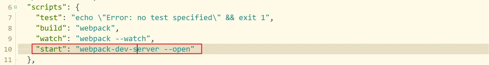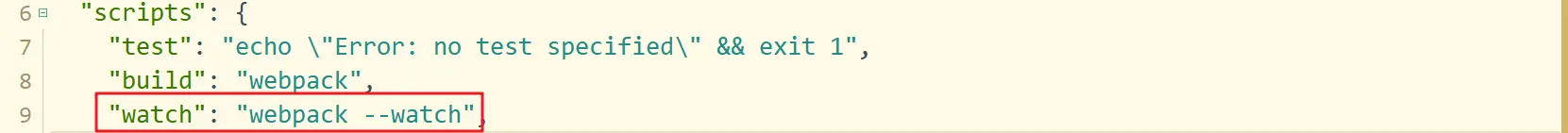 在package.json添加一个用于启动 webpack 的观察模式的 npm script 脚本: