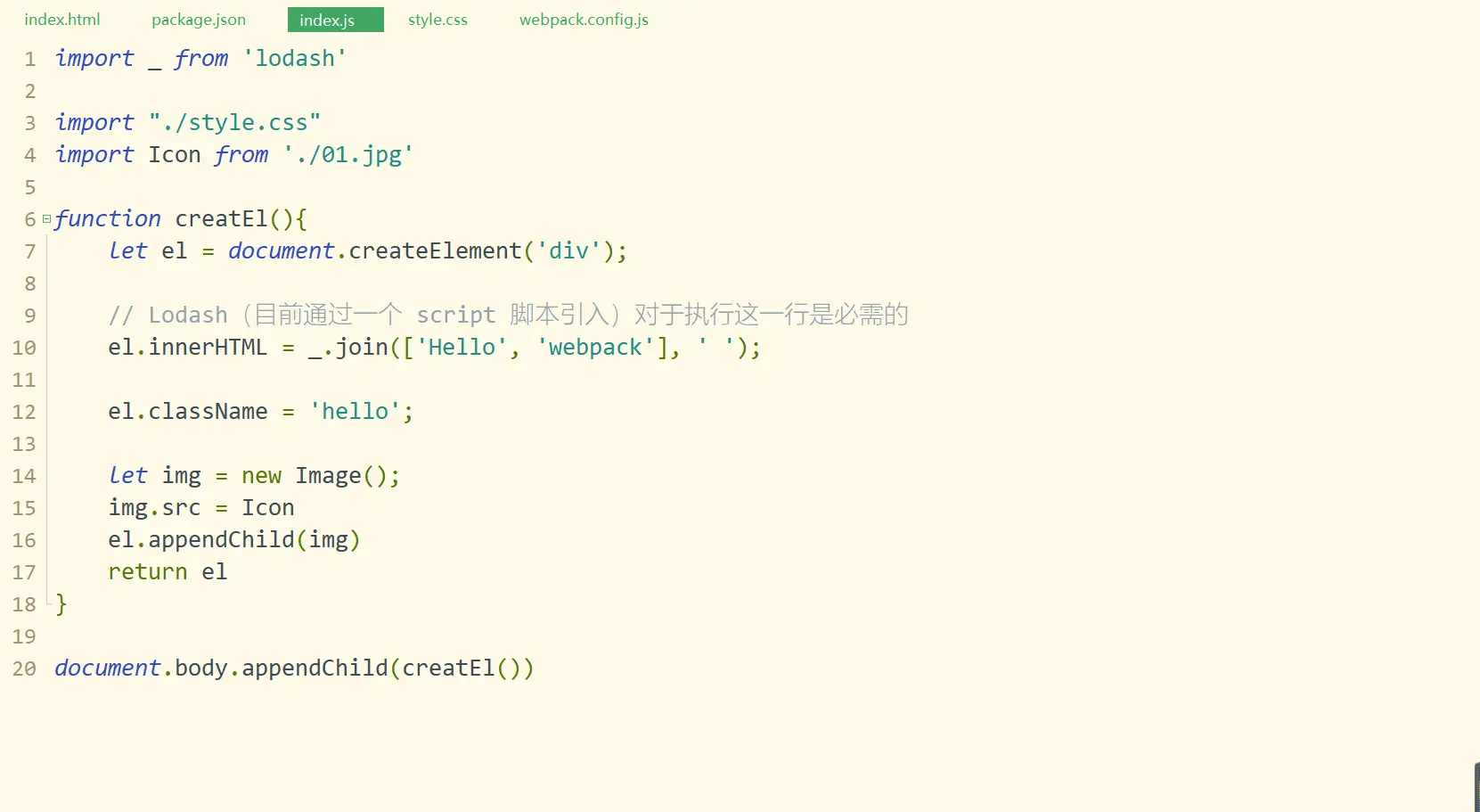el.innerHTML = _.join(['Hello', 'webpack'], ' ');