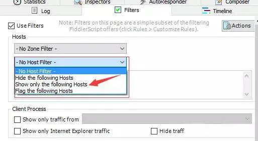 Show Only The Following Hosts:只显示过滤到的域名