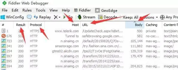 六、fiddler会话框其实还有一个非常实用的功能:点击后自动排序