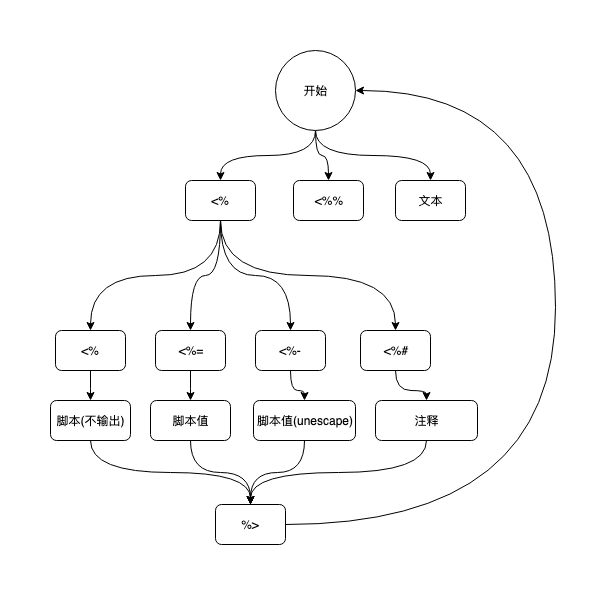 <%%和%%>- 表示标签转义, 比如<%%会输出为<% -
