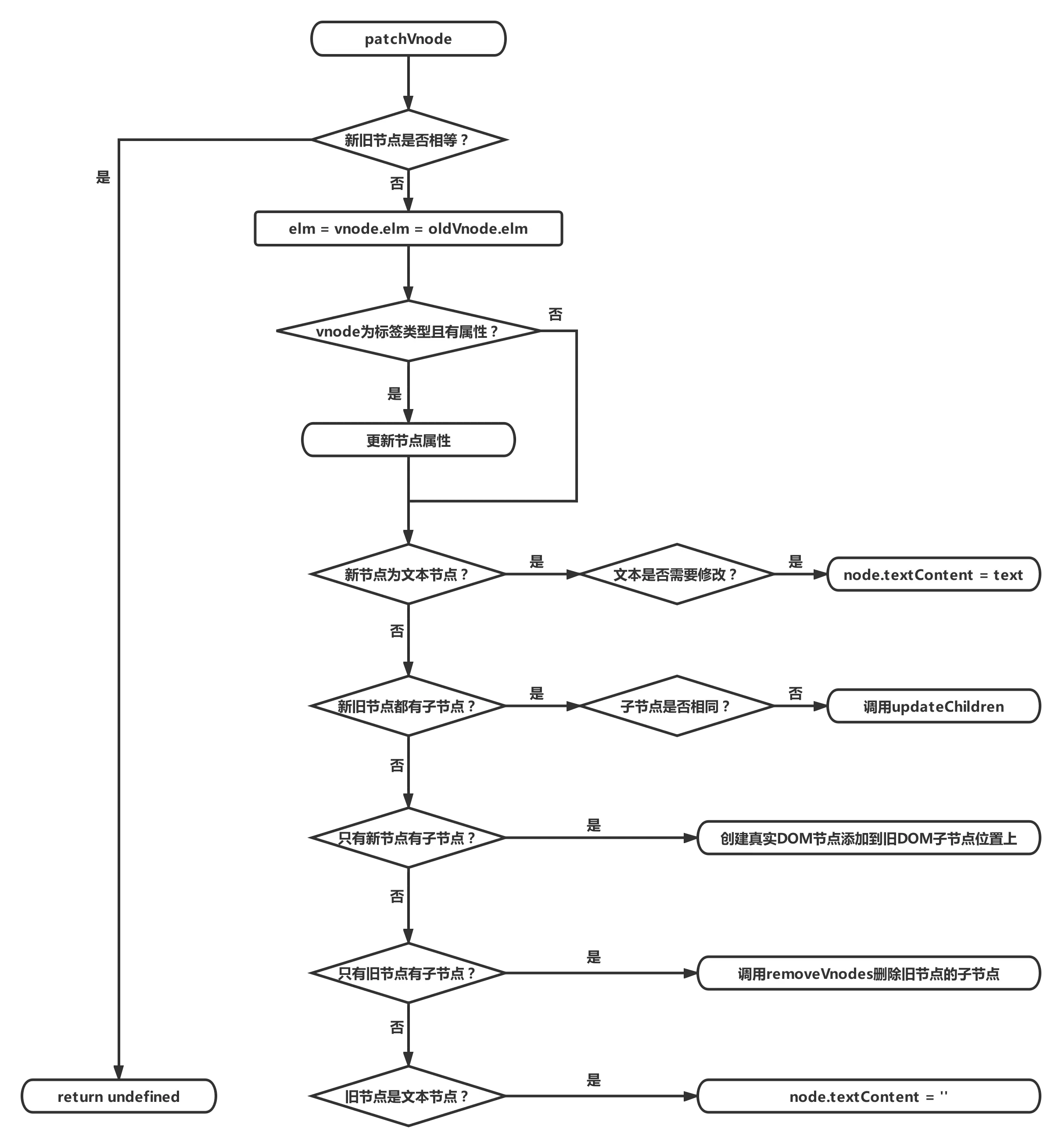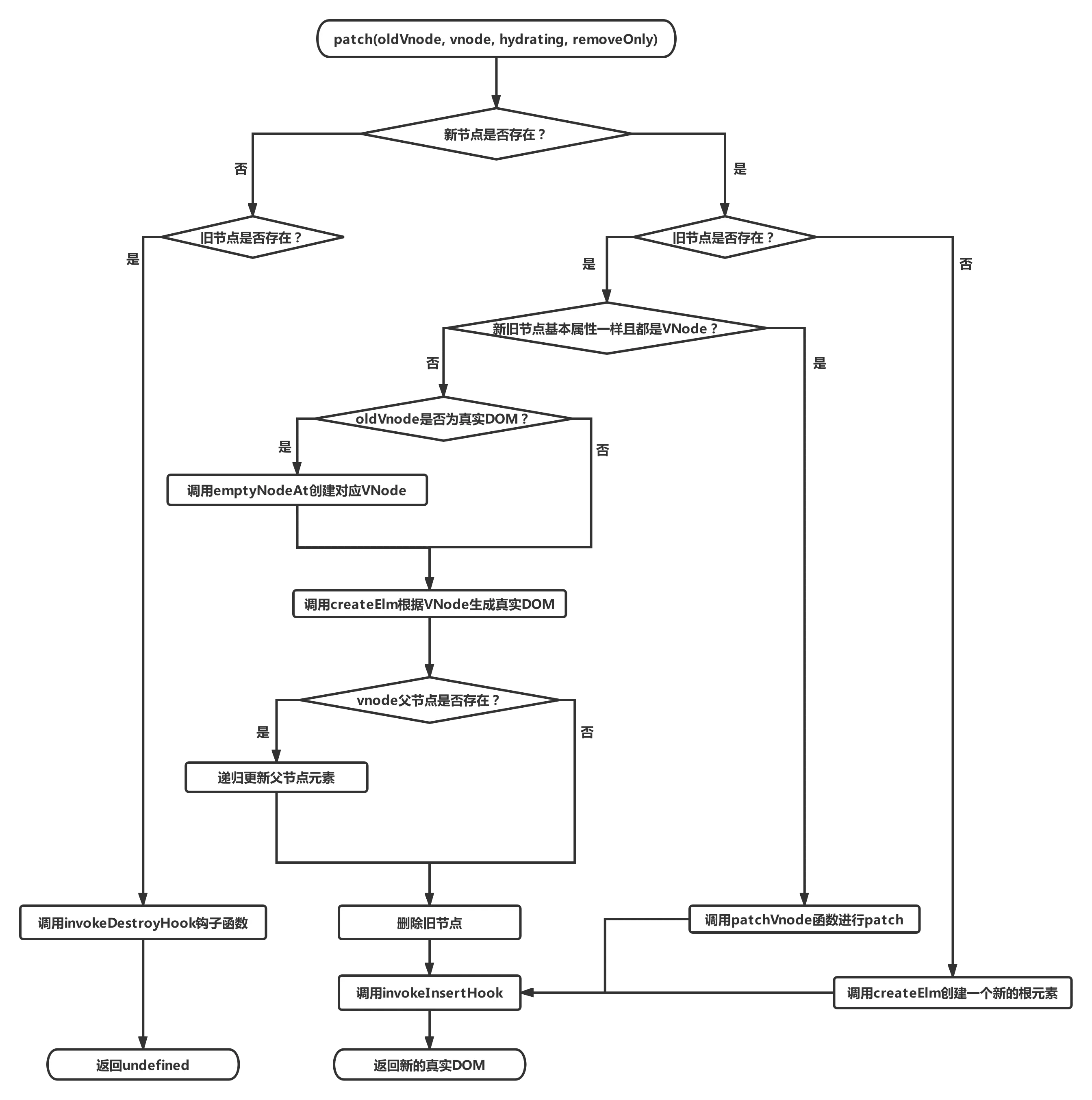 _update 方法将虚拟DOM转化为真实DOM并在数据改变时更新视图的功能主要时调用 patch 函数完成的。patch 根据新旧VNode的具体情况来进行相应处理,比较核心的是为了提升性能在旧节点能够复用时调用 patchVnode 函数进行节点复用。