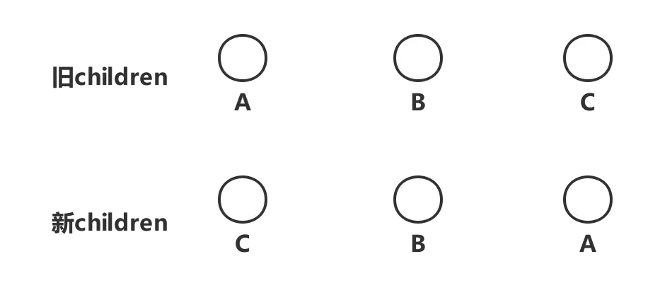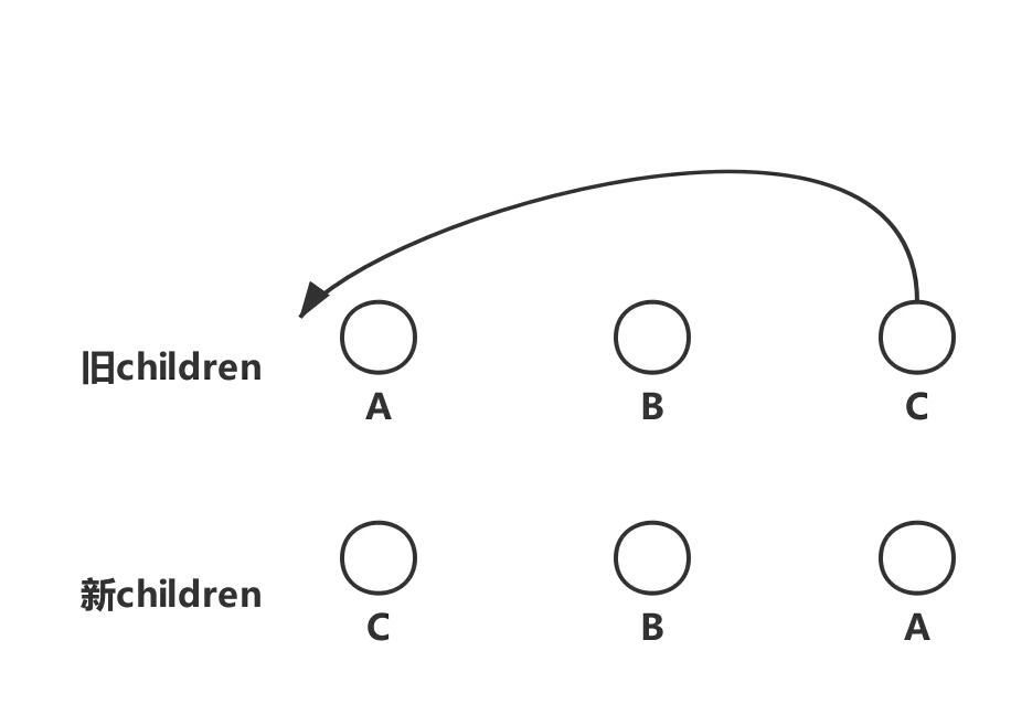这种比对的结果有两种情况:找到新开始节点对应的可复用旧节点、未找到可复用旧节点。