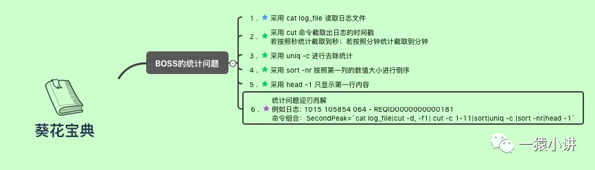 SecondPeak=`cat log_file|cut -d, -f1| cut -c 1-11|sort|uniq -c |sort -nr|head -1`好了,今天的分享接近尾声,不知道你 get 到多少,懂与不懂,都建议你收藏,以备不时之需;如果想让更多人进步,那不妨发扬一下分享的精神,动动你的手指放肆的转发一下。