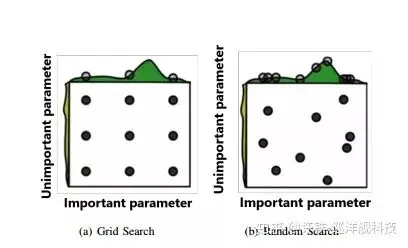 模型选定后的调参过程,最常用的是网格搜索,也就是按照固定的间距,在搜索空间上打点,但下图指出,网格搜索不一定好过随机搜索,原因是对于重要参数,网格搜索采样的点会不足,从而导致无法取到对模型效果相对较好的点,autoML会使用随机抽样,首先评价各个超参数的重要性,之后再对重要的参数进行微调。