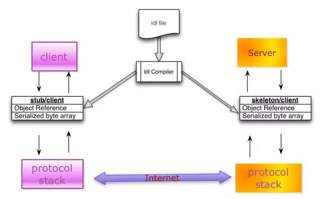 Stub/Skeleton Lib:负责序列化和反序列化的工作代码。Stub是一段部署在分布式系统客户端的代码,一方面接收应用层的参数,并对其序列化后通过底层协议栈发送到服务端,另一方面接收服务端序列化后的结果数据,反序列化后交给客户端应用层;Skeleton部署在服务端,其功能与Stub相反,从传输层接收序列化参数,反序列化后交给服务端应用层,并将应用层的执行结果序列化后最终传送给客户端Stub。