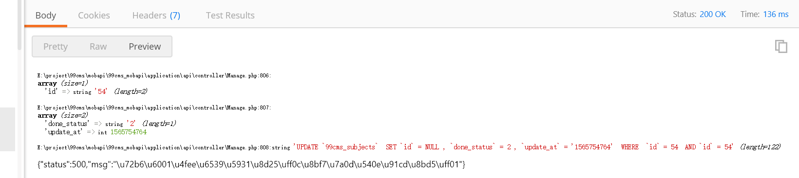 $res_upd = db('subjects', $this->db, false)->where($where)->update($data);