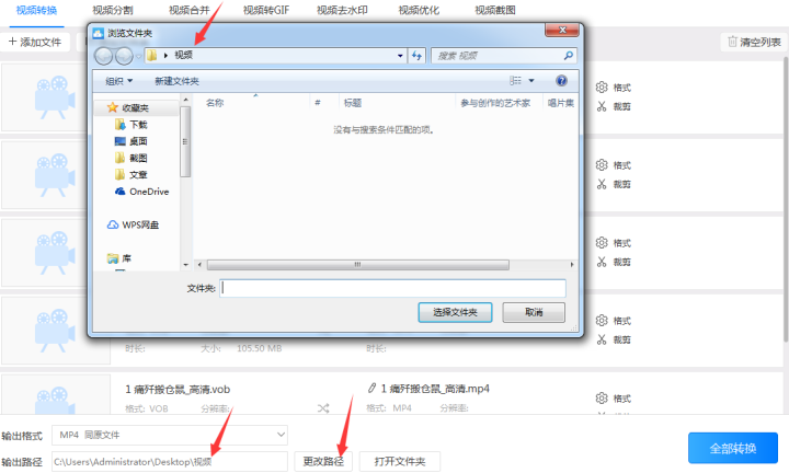 3、把输出格式设置为mp4同原文件后设置转换后的mp4文件存储到电脑的输出路径。设置时可以在输出路径的输入框中直接填写也可以点击更改路径按钮选择输出路径。