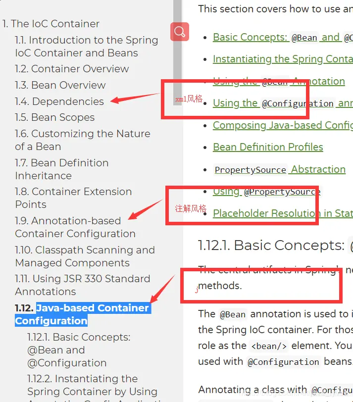个人觉得spring5的文档如果你不熟悉springboot可能读来意义不大。举个栗子吧,如上文说的spring三种编码风格,其实在spring5当中的体现比较不直观,但是spring4体现的非常直观,一目了然,引用spring4文档中的一句话