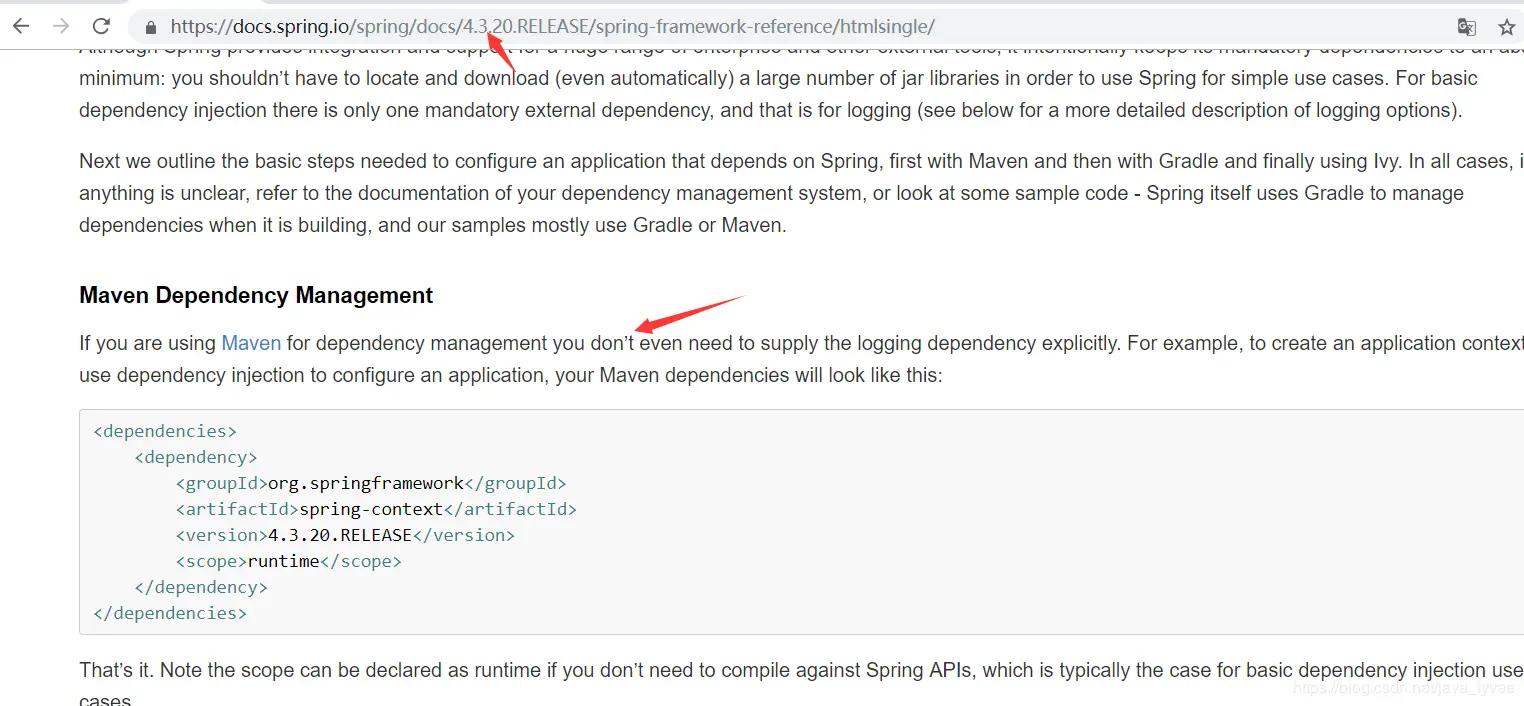 回到刚刚的问题,如果你想开发一个spring的hello world,我们应该加入哪些依赖呢?spring5提供的文档是一个连接入口图7: