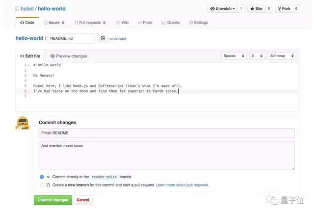 输入你想要修改的内容,然后点击Commit change,一个commit就完成了。