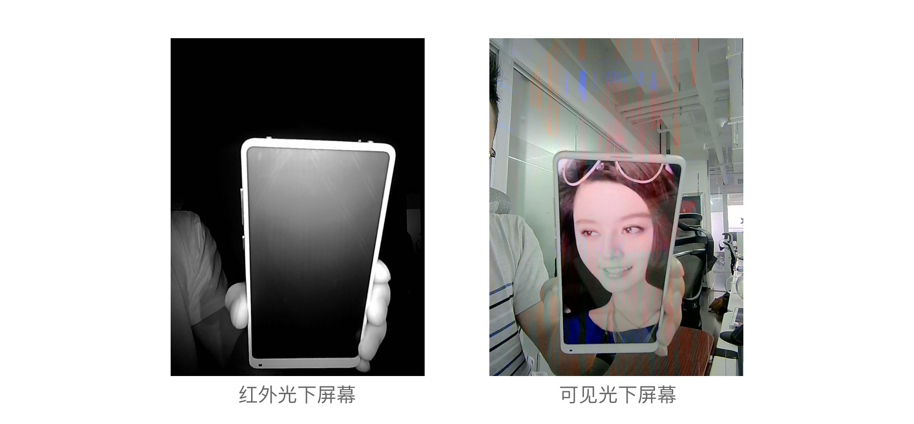由于自带红外光源,因此受环境光的影响较小,可以在完全黑暗的环境下成像,对于手机屏幕有近100%的防攻击能力,如下图!