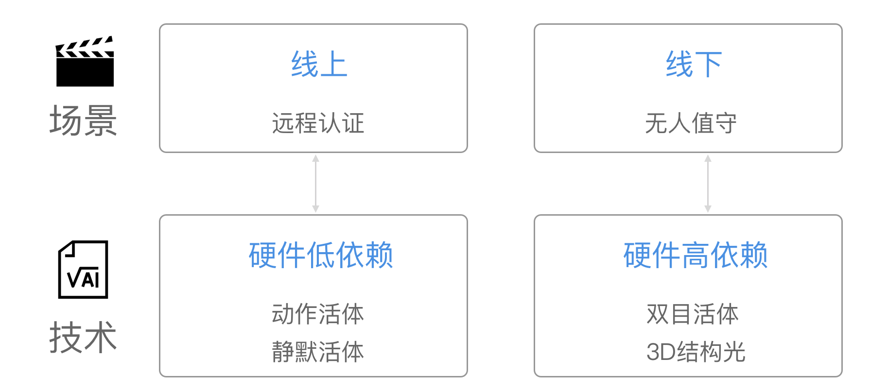 云识客将目前人脸识别的主要应用场景分为两类:线上远程认证场景(金融开户、刷脸注册、刷脸登录等)、线下无人值守场景(人脸门禁、刷脸取款、刷脸支付等)。