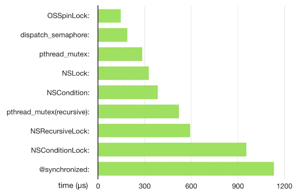 ibireme 在《不再安全的 OSSpinLock》这篇文章中提到性能最好的 OSSpinLock 已经不再是线程安全的并把自己开源项目中的 OSSpinLock 都替换成了 pthread_mutex。