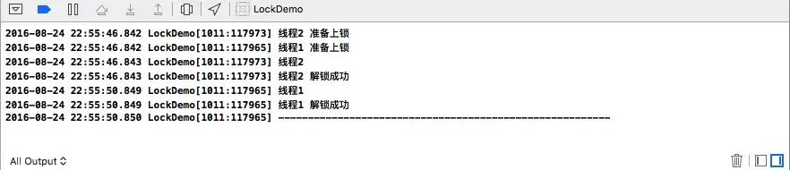 NSLog(@"线程1 解锁成功");