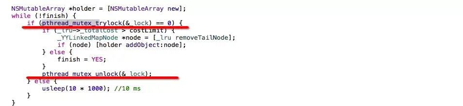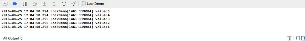 OS_SPINLOCK_INIT: 默认值为 0,在 locked 状态时就会大于 0,unlocked状态下为 0 OSSpinLockLock(&oslock):上锁,参数为 OSSpinLock 地址 OSSpinLockUnlock(&oslock):解锁,参数为 OSSpinLock 地址 OSSpinLockTry(&oslock):尝试加锁,可以加锁则立即加锁并返回 YES,反之返回 NO