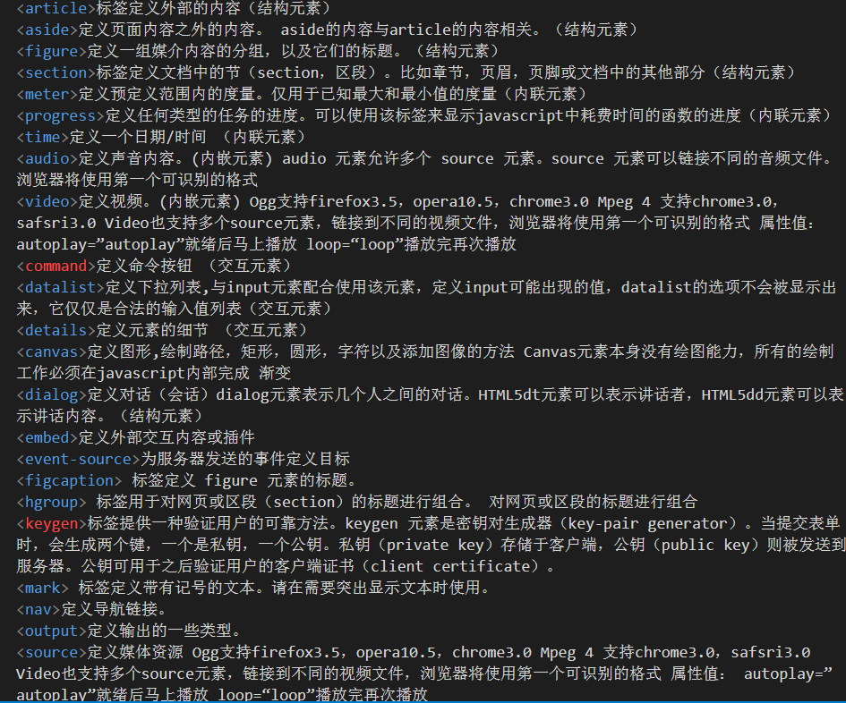 5、HTML5 中新增加的标签有哪些: