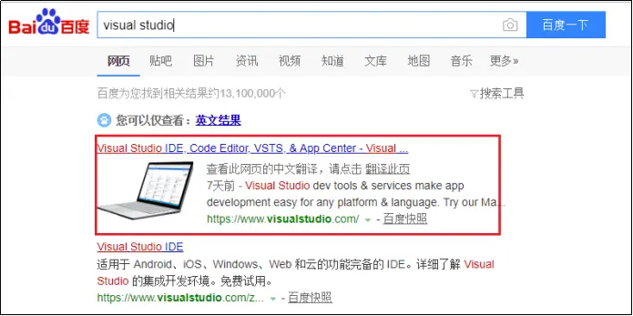 在百度上搜索Visual Studio就会出现Visual Studio的官网,