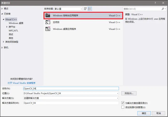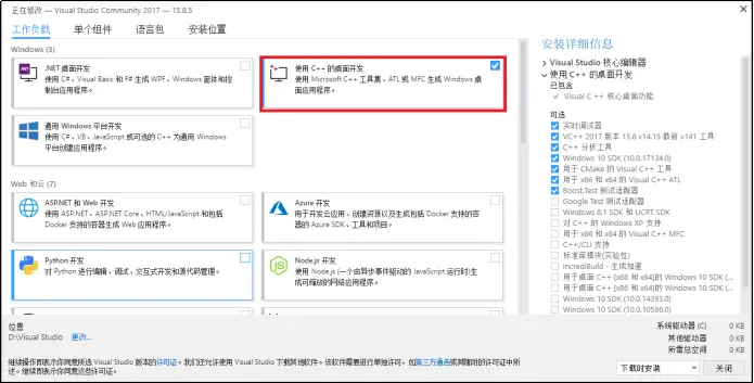 如果你只希望使用Visual Studio来学习OpenCV,那么选择C++的桌面开发即可