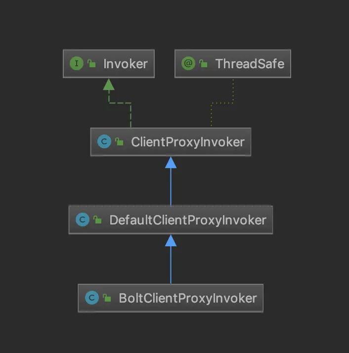 所以当我们用BoltClientProxyInvoker#invoke的时候实际上是调用了父类的invoke方法 ClientProxyInvoker#invoke