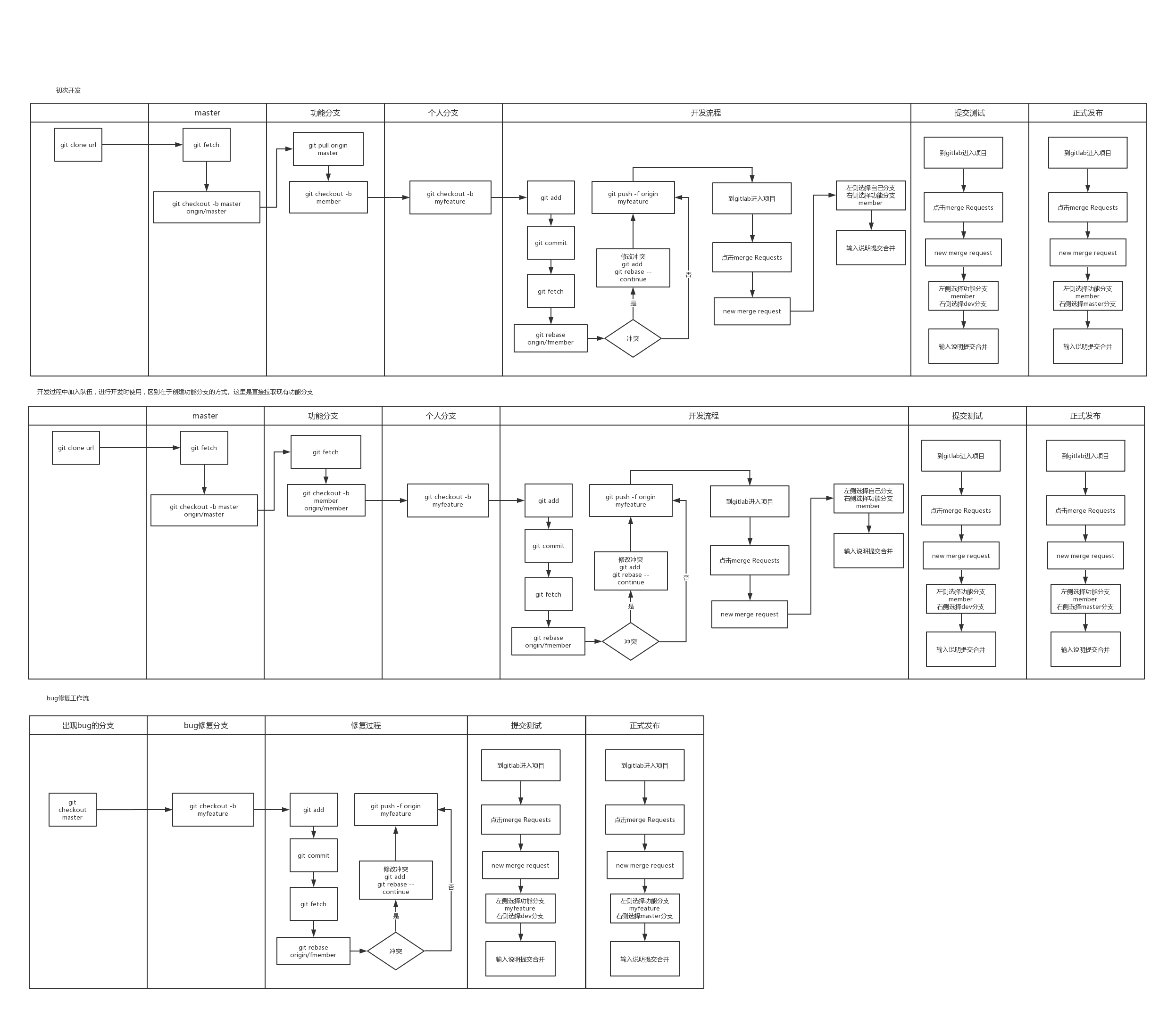 git是个非常好用的工具,特别是多人开发的时候,团队代码管理非常有用。分享一下我们团队使用的工作流。