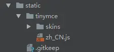 npm install tinymce -S安装成功之后,在node_modules目录中,查找tinymce/skins目录,将skins目录拷贝到static目录下。为了结构清晰,我外层包了tinymce目录。