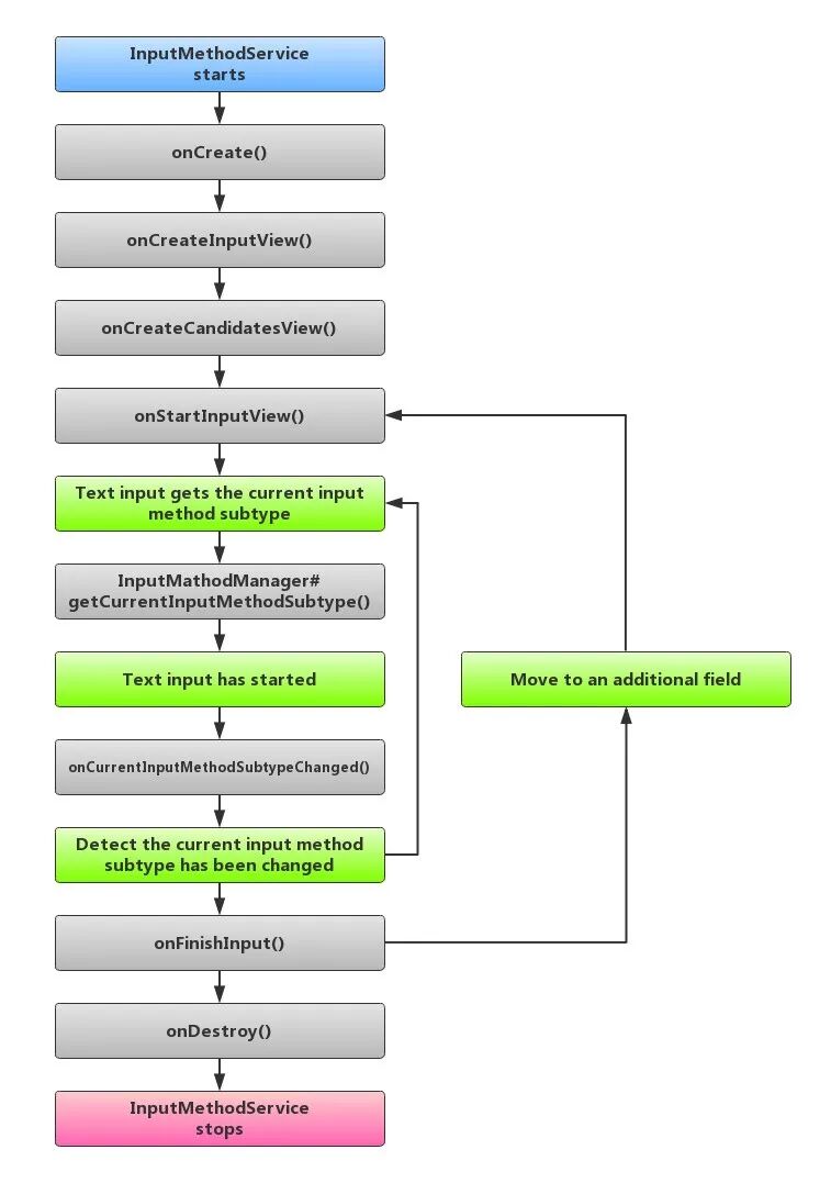 而这些方法定义的生命周期则可以通过Android Developers[1]官方的一张图来深入理解,相信每篇输入法相关的文章都会有这张经典的图: