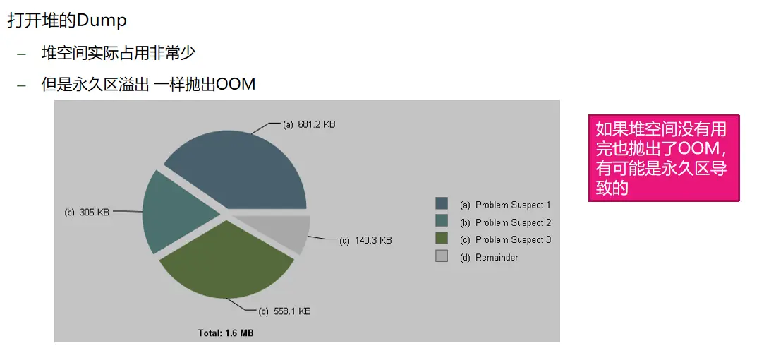 在OOM时,执行一个脚本 "-XX:OnOutOfMemoryError=D:/tools/jdk1.7_40/bin/printstack.bat %p“(这个printstack.bat里边的内容是 D:/tools/jdk1.7_40/bin/jstack -F %1 > D:/a.txt ) 当程序OOM时,在D:/a.txt中将会生成线程的dump 可以在OOM时,发送邮件,甚至是重启程序