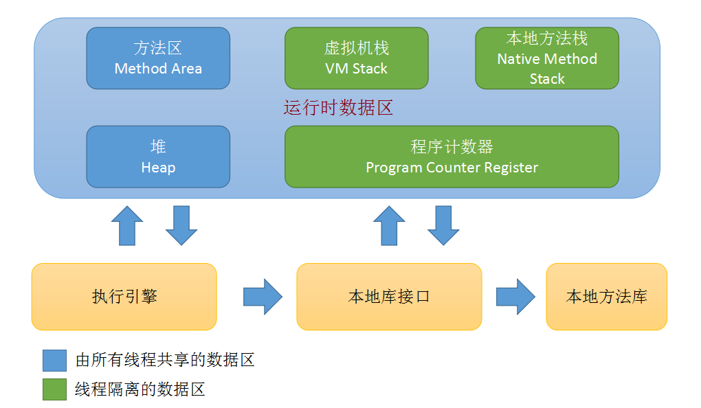 Java虚拟机在执行Java程序的过程中会把它所管理的内存划分为若干个不同的数据区域。 如下图所示: