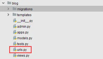 其实上面我已经创建过一个叫“blog”的应用了,直接使用创建命令创建即可,在blog文件下新建urls.py 的路由文件
