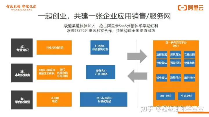今天阿里云已经有一批做软件的分销伙伴,他们过去顺手做一些SaaS的生意。今天我们希望找到更多的合作伙伴构建一支全新的面向SaaS分销的体系。这批伙伴的核心业务就是以SaaS业务为主的,如果各位感兴趣的话,各位进来之后是第一批全职参与这个合作伙伴的体系。这个市场我相信是有大把机会的。
