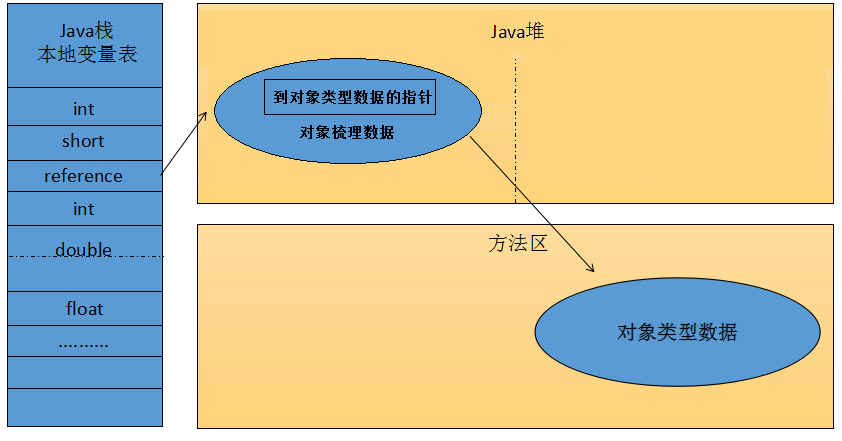 使用对象时Java程序需要通过栈上的reference数据来操作堆上的具体对象。