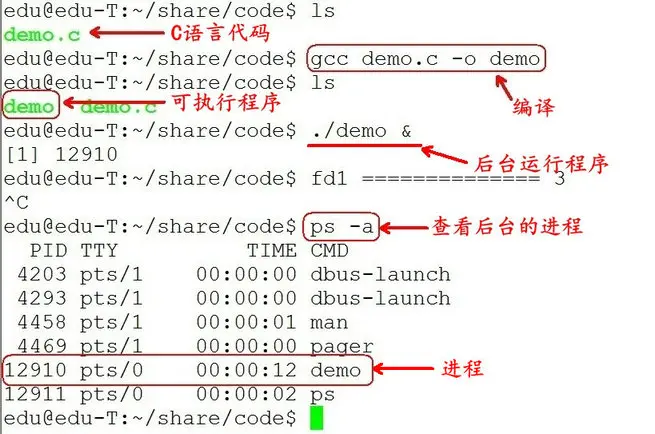 参数:pid:进程号