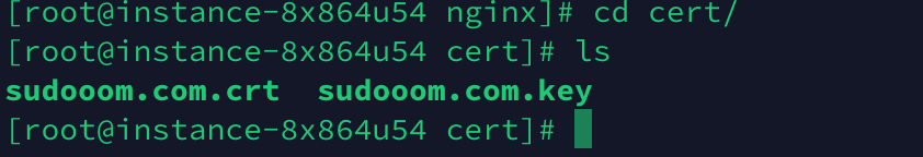 我将conf.d跟cert目录放在docker-compose相同路径下,然后将我的ssl key文件放到cert目录下 例如: