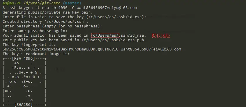 ssh-keygen -t rsa -b 4096 -C 邮箱