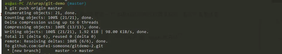 git remote add origin git@github.com:GeFei-someone/gitdemo-2.git // 连接远程仓库