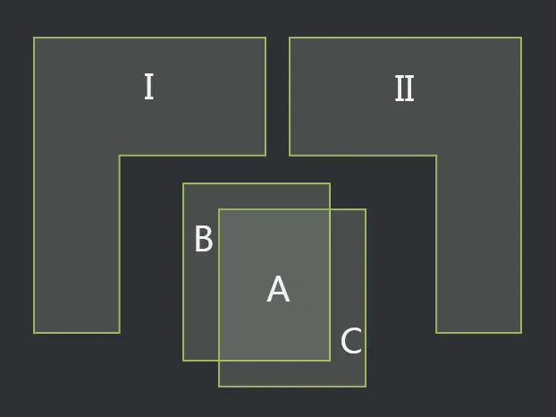 将M和N剥离出来后,我们对其功能进行抽象合并,如下图。M和N合并后,得到模块A + B + C,其中A是M和N中共有的功能,B和C分别是针对系统I和II提供的一些定制化功能。虽然有少量功能无法做到完全合并和复用,但新模块中绝大多数功能集合A已经被高度抽象,可以被系统I和II复用。而被剥离合并后的全新模块A+B+C,将会下沉一层,作为基础服务,为系统I和II提供支持。如下图。
