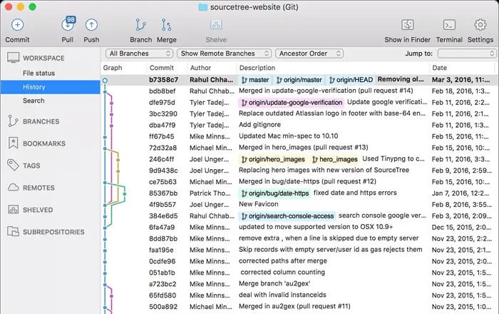 - git和SourceTree 现在开发协作管理代码基本都是使用Git,所以需要安装Git。因为git本身提供的客户端不是很方便,同时你不习惯敲命令,可以使用SourceTree,提供一个Git可视化界面。 git
