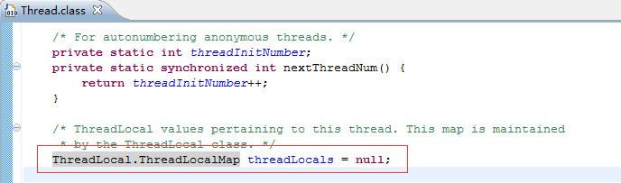 2:ThreadLocal中又定义一个键值对Entry,它用ThreadLocal作为键值。我们看到在Thread类中有一个ThreadLocalMap的类型的变量叫做threadLocals。