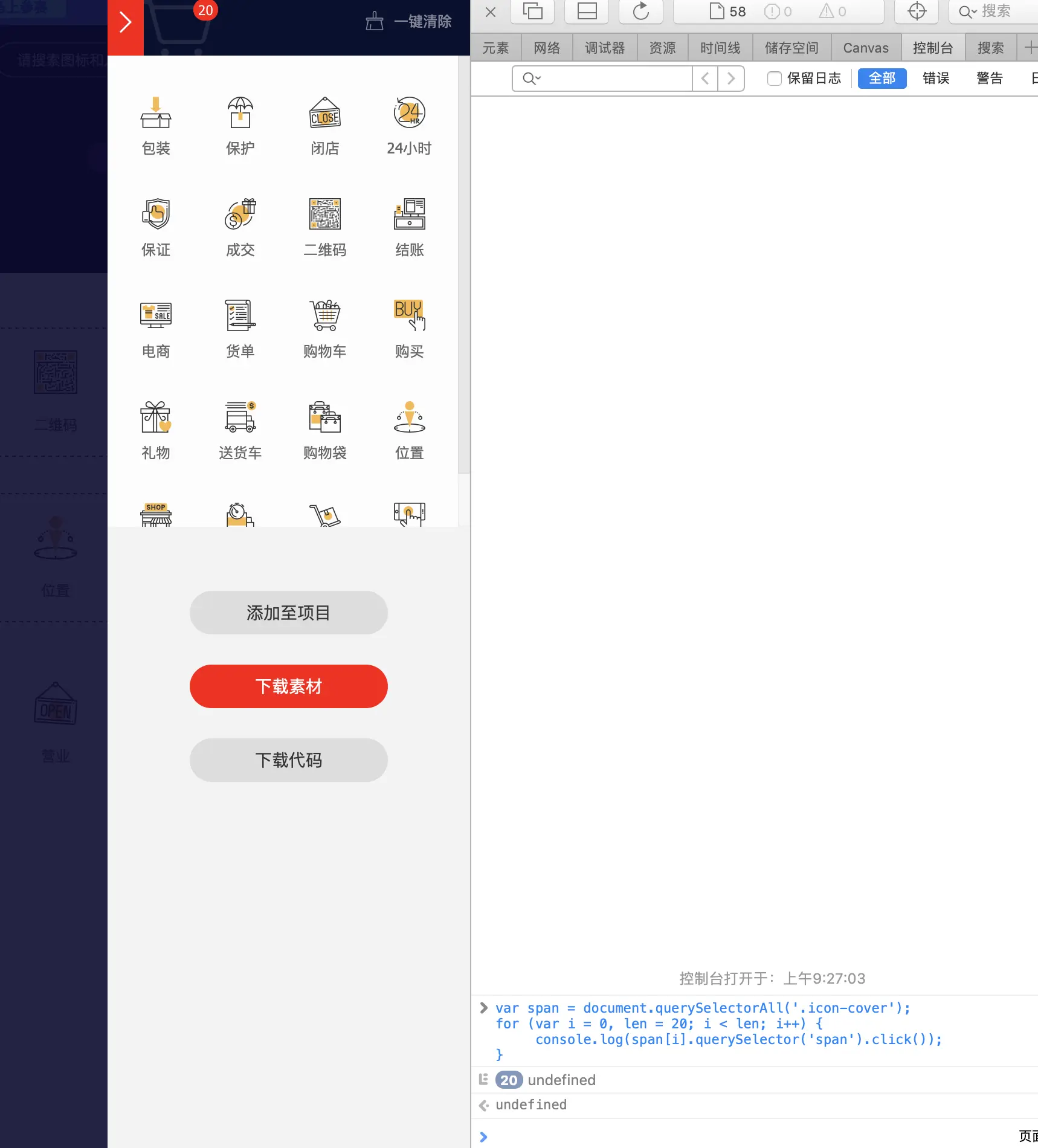 但在实际使用时发现Iconfont做了数目下载的限制,一次最多下载20张,所以需要修改一下,变成: