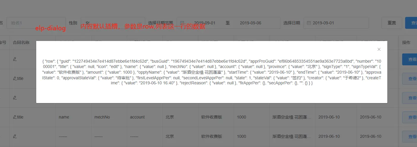 <elp-dialog :visible.sync="visible" title="标题" slideOutType="rightSide">弹出框内容</elp-dialog>