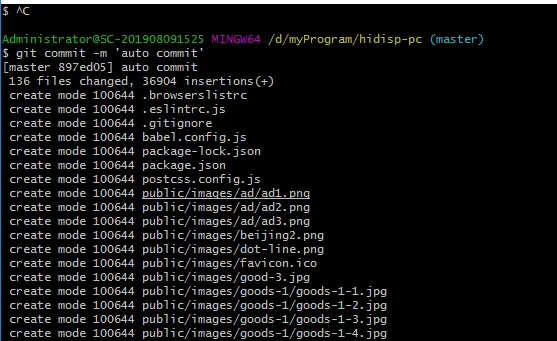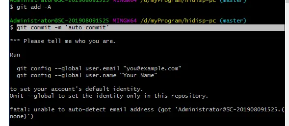 4)提交代码 git commit -m 'auto commit',